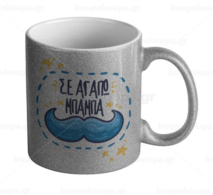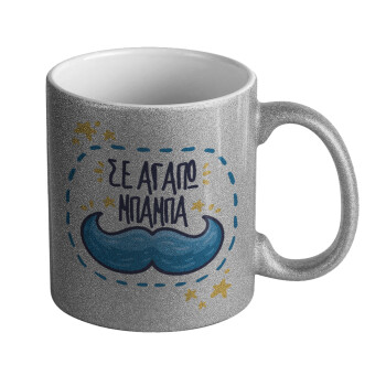 Σε αγαπώ μπαμπά!!!, Κούπα Ασημένια Glitter που γυαλίζει, κεραμική, 330ml