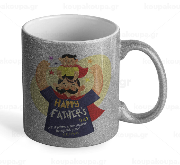 Happy Fathers Day με όνομα, Κούπα Ασημένια Glitter που γυαλίζει, κεραμική, 330ml