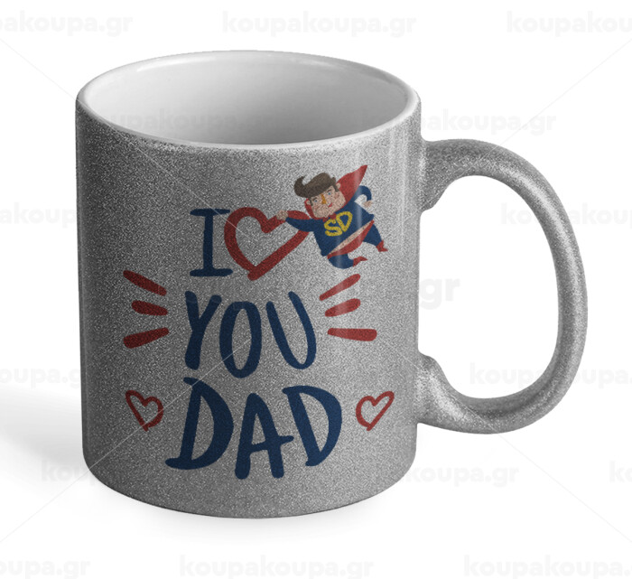Super Dad, Κούπα Ασημένια Glitter που γυαλίζει, κεραμική, 330ml