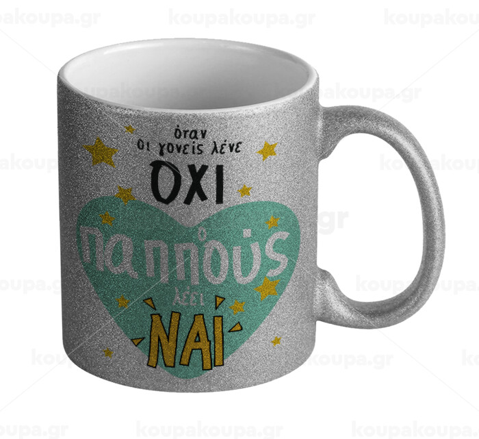 Όταν οι γονείς λένε ΟΧΙ, ο παππούς λέει ΝΑΙ, Κούπα Ασημένια Glitter που γυαλίζει, κεραμική, 330ml