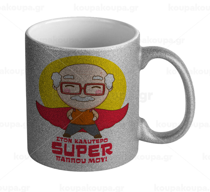 To my best Super Grandpa!, Κούπα Ασημένια Glitter που γυαλίζει, κεραμική, 330ml