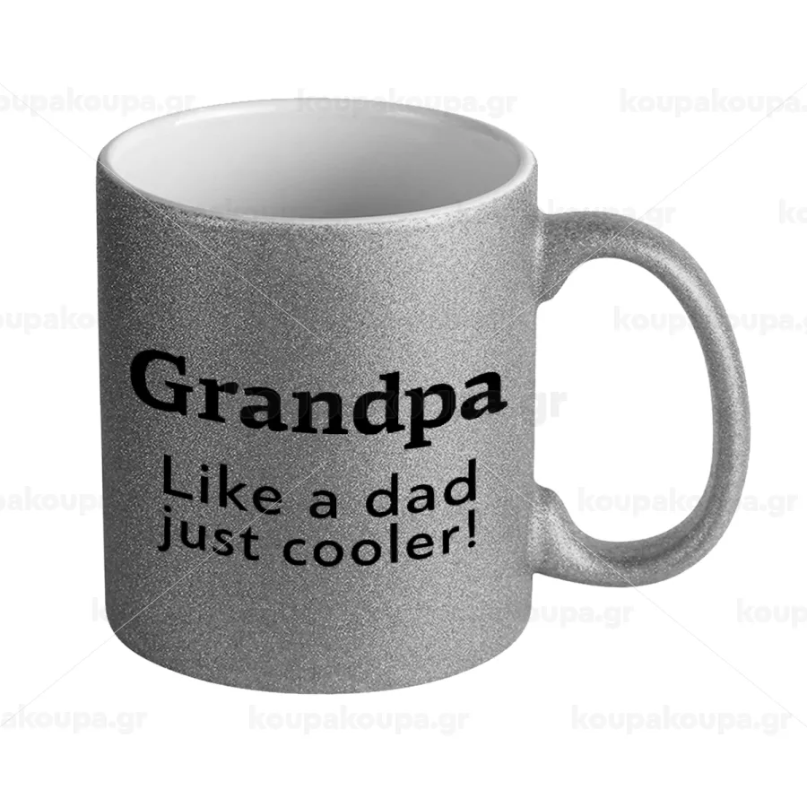 Grandpa, like a dad, just cooler, Κούπα Ασημένια Glitter που γυαλίζει, κεραμική, 330ml