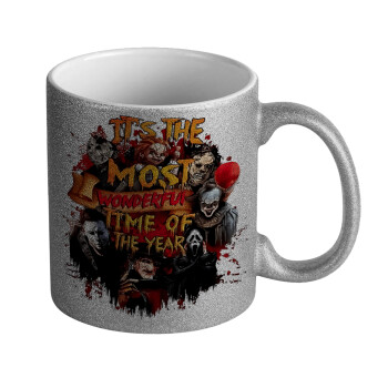 Halloween it's most wonderful time of the year, Κούπα Ασημένια Glitter που γυαλίζει, κεραμική, 330ml