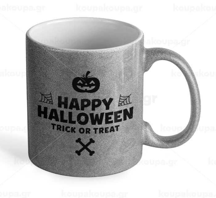 Happy Halloween pumpkin, Κούπα Ασημένια Glitter που γυαλίζει, κεραμική, 330ml