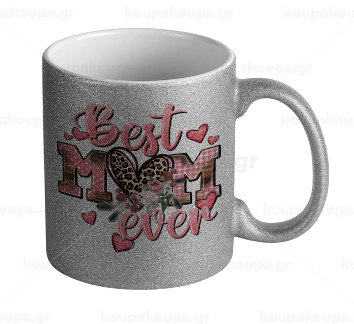 Best mom ever Mother's Day, Κούπα Ασημένια Glitter που γυαλίζει, κεραμική, 330ml
