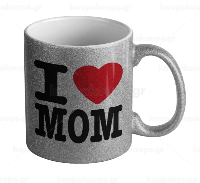 I LOVE MOM, Κούπα Ασημένια Glitter που γυαλίζει, κεραμική, 330ml