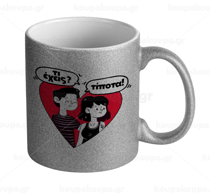Τι έχεις? Τίποτα!, Κούπα Ασημένια Glitter που γυαλίζει, κεραμική, 330ml