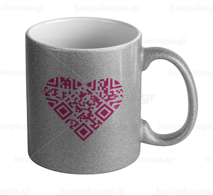 Heart hidden MSG, try me!!!, Κούπα Ασημένια Glitter που γυαλίζει, κεραμική, 330ml