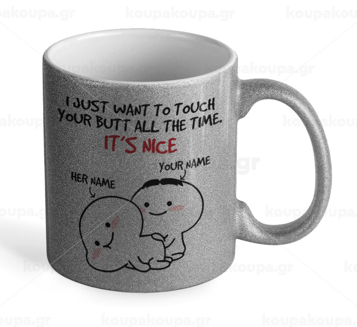 I Just Want To Touch Your Butt All The Time, Κούπα Ασημένια Glitter που γυαλίζει, κεραμική, 330ml