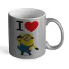 I love by minion, Κούπα Ασημένια Glitter που γυαλίζει, κεραμική, 330ml