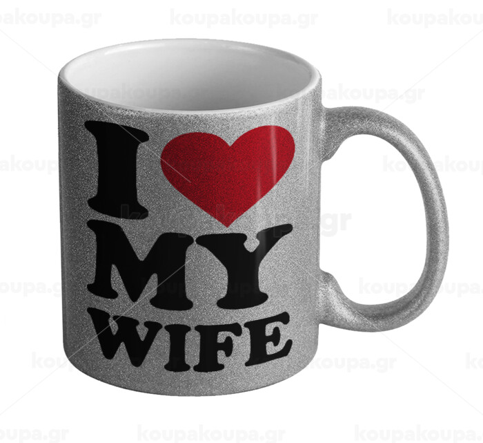 I Love my Wife, Κούπα Ασημένια Glitter που γυαλίζει, κεραμική, 330ml