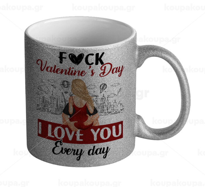 I love You Everyday , Κούπα Ασημένια Glitter που γυαλίζει, κεραμική, 330ml