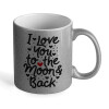 I love you to the moon and back with hearts, Κούπα Ασημένια Glitter που γυαλίζει, κεραμική, 330ml