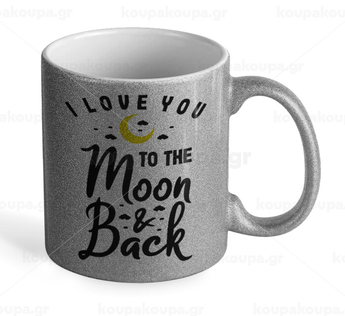 I love you to the moon and back, Κούπα Ασημένια Glitter που γυαλίζει, κεραμική, 330ml