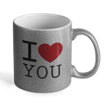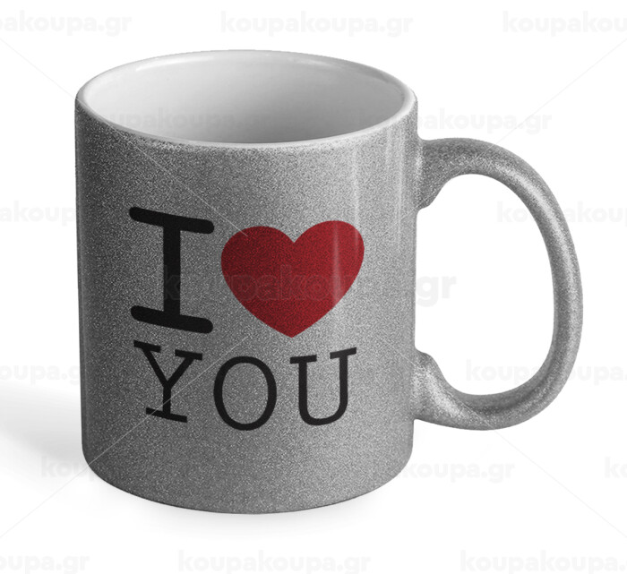 I Love you classic, Κούπα Ασημένια Glitter που γυαλίζει, κεραμική, 330ml