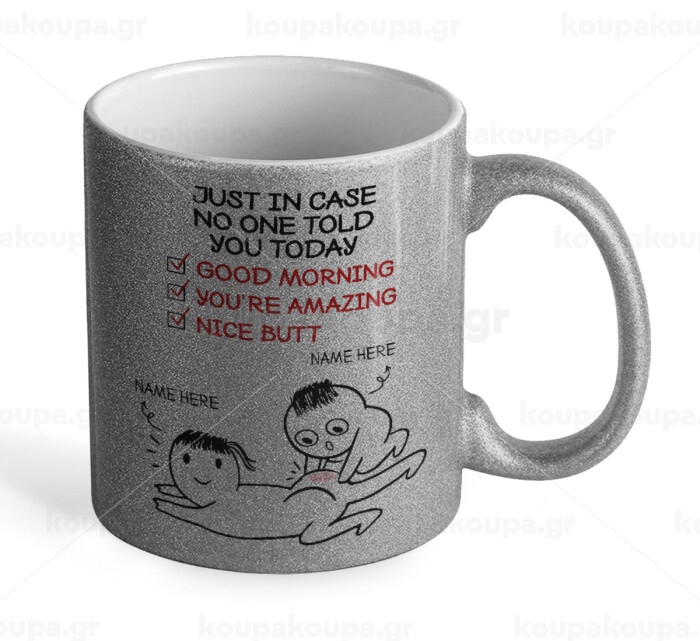 Just in case no one told you today..., Κούπα Ασημένια Glitter που γυαλίζει, κεραμική, 330ml