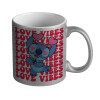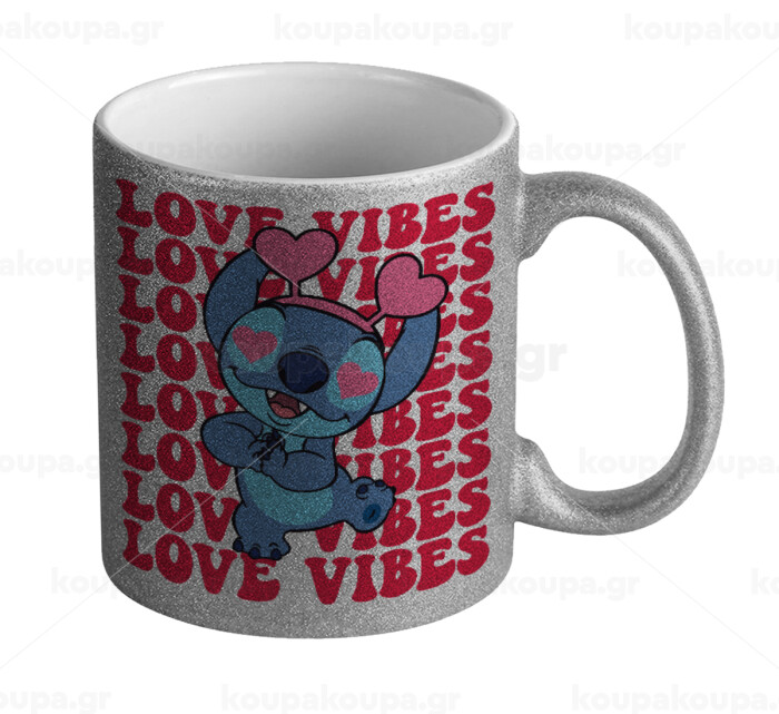 Lilo & Stitch Love vibes, Κούπα Ασημένια Glitter που γυαλίζει, κεραμική, 330ml