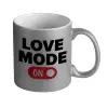 LOVE MODE ON, Κούπα Ασημένια Glitter που γυαλίζει, κεραμική, 330ml