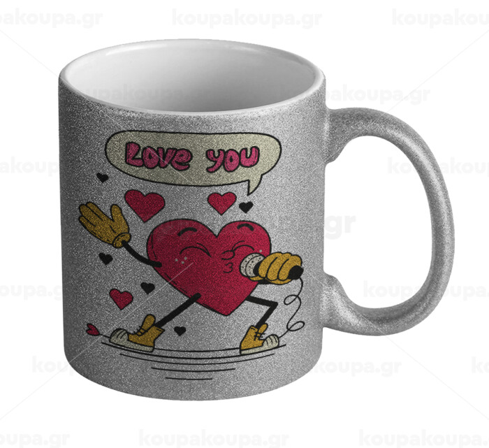 LOVE YOU SINGER!!!, Κούπα Ασημένια Glitter που γυαλίζει, κεραμική, 330ml