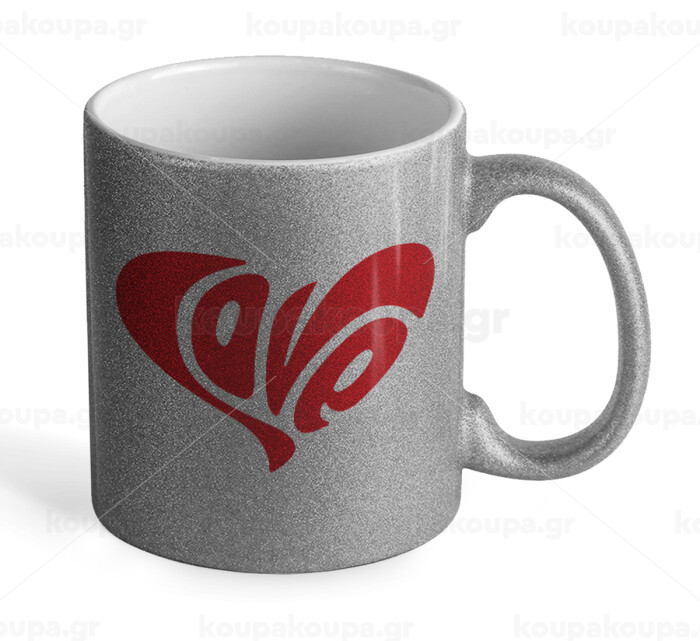 Love, Κούπα Ασημένια Glitter που γυαλίζει, κεραμική, 330ml