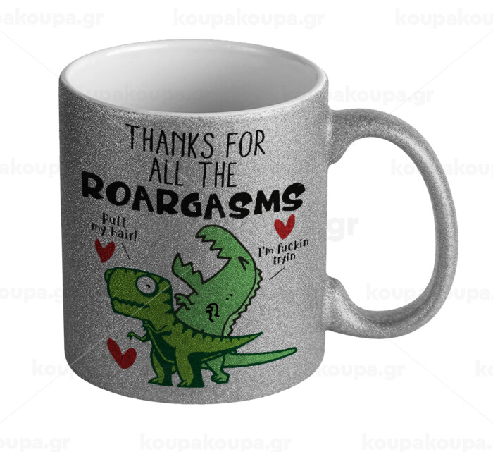 Thanks for all the ROARGASMS, Κούπα Ασημένια Glitter που γυαλίζει, κεραμική, 330ml