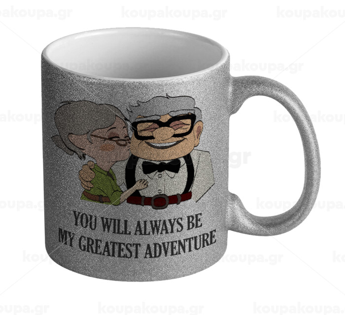 UP, YOU WILL ALWAYS BE MY GREATEST ADVENTURE, Κούπα Ασημένια Glitter που γυαλίζει, κεραμική, 330ml