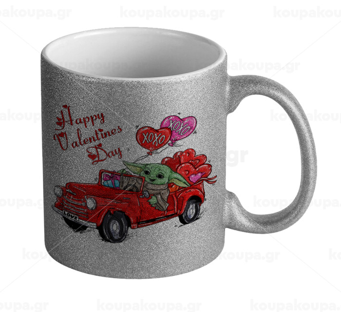 Yoda, happy valentines day (xoxo), Κούπα Ασημένια Glitter που γυαλίζει, κεραμική, 330ml