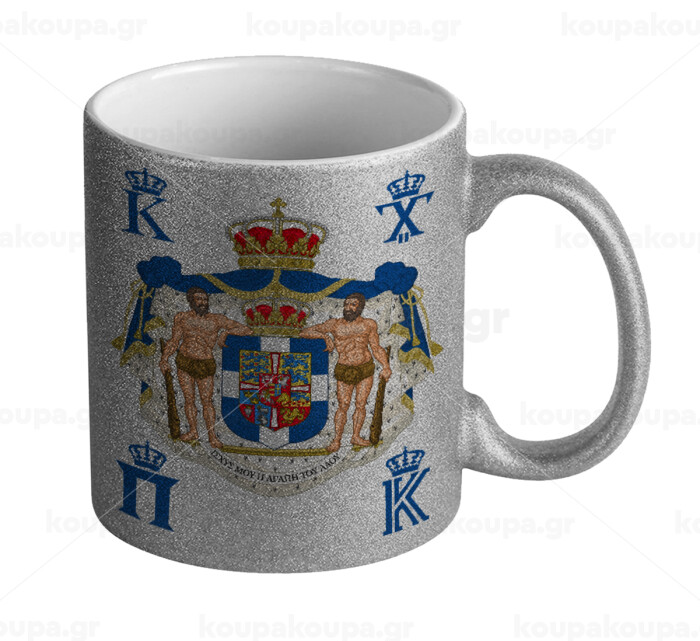 Hellas kingdom, Κούπα Ασημένια Glitter που γυαλίζει, κεραμική, 330ml