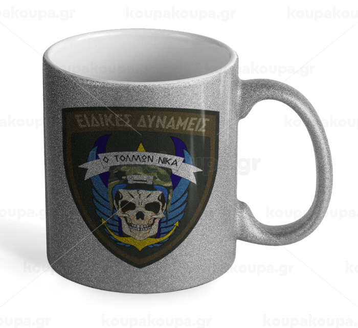 Hellas special force's, Κούπα Ασημένια Glitter που γυαλίζει, κεραμική, 330ml