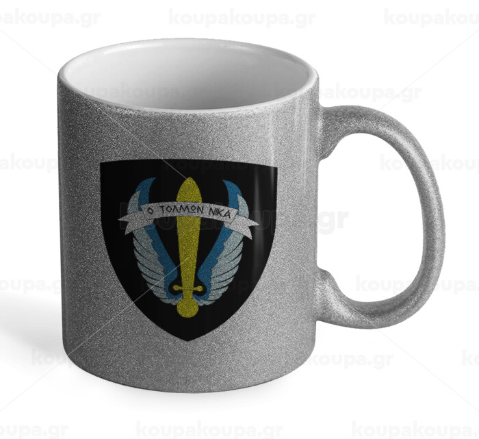 Έμβλημα Μονάδων Καταδρομών Ο Τολμων Νικα - Λοκ, Κούπα Ασημένια Glitter που γυαλίζει, κεραμική, 330ml