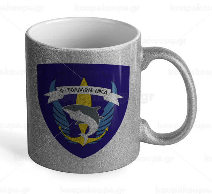 Hellas special force's shark, Κούπα Ασημένια Glitter που γυαλίζει, κεραμική, 330ml