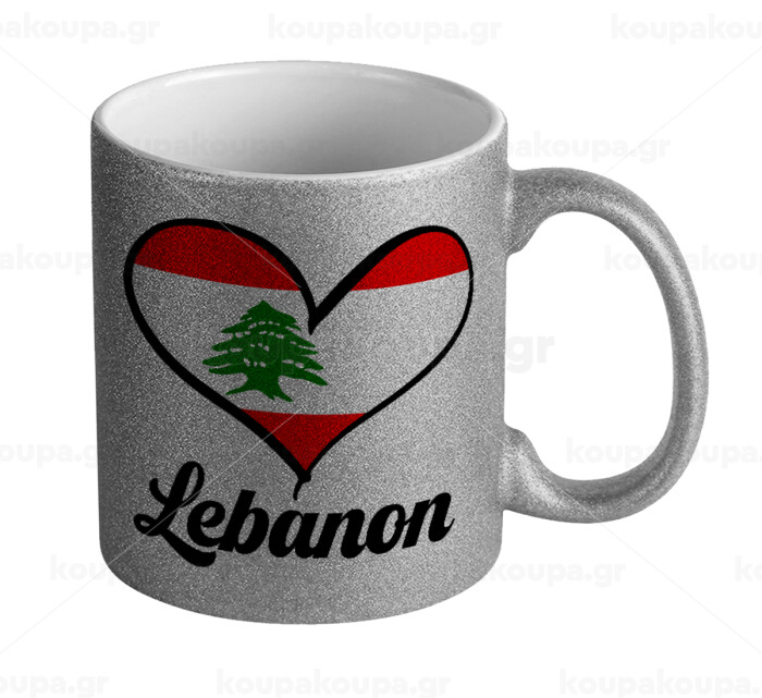 Lebanon flag, Κούπα Ασημένια Glitter που γυαλίζει, κεραμική, 330ml