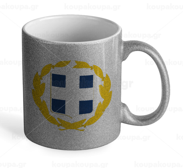 Hellas Εθνόσημο, Κούπα Ασημένια Glitter που γυαλίζει, κεραμική, 330ml