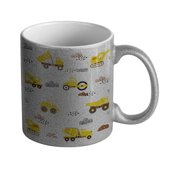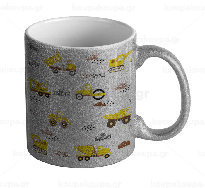 Car construction, Κούπα Ασημένια Glitter που γυαλίζει, κεραμική, 330ml