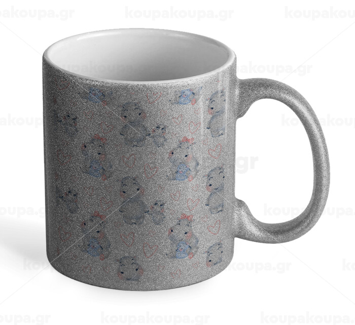 Hippo, Κούπα Ασημένια Glitter που γυαλίζει, κεραμική, 330ml
