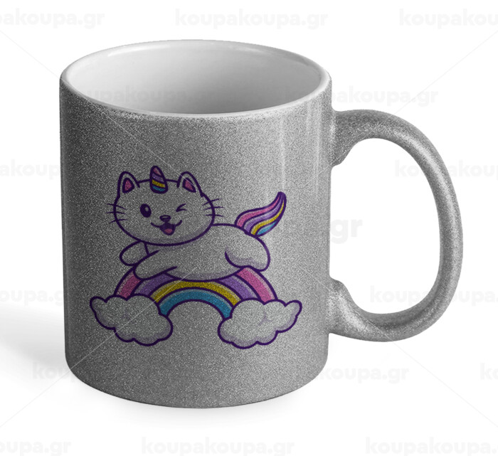 Cute cat unicorn, Κούπα Ασημένια Glitter που γυαλίζει, κεραμική, 330ml