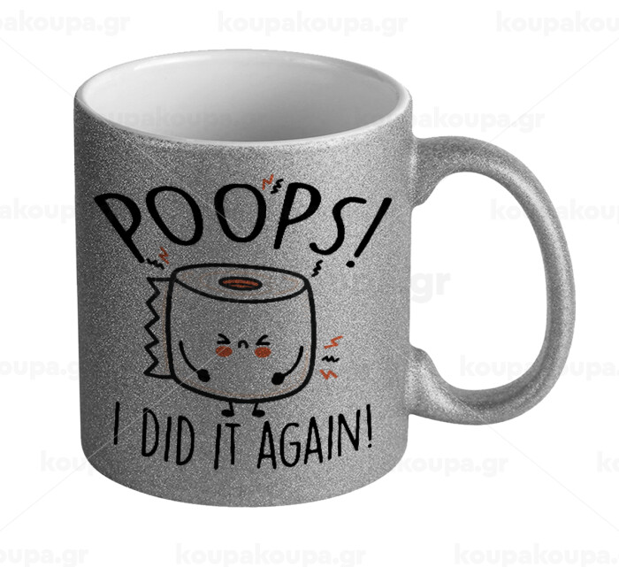 Poops!...I Did It Again, Κούπα Ασημένια Glitter που γυαλίζει, κεραμική, 330ml