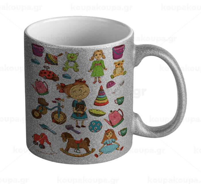 Toys Girl, Κούπα Ασημένια Glitter που γυαλίζει, κεραμική, 330ml
