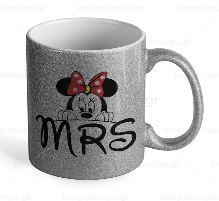 Minnie Mrs, Κούπα Ασημένια Glitter που γυαλίζει, κεραμική, 330ml
