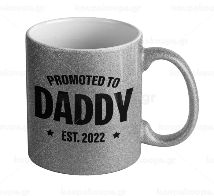 Promoted to Daddy, Κούπα Ασημένια Glitter που γυαλίζει, κεραμική, 330ml