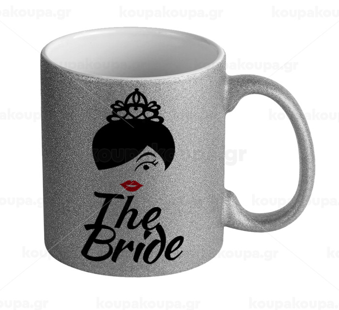 The Bride red kiss, Κούπα Ασημένια Glitter που γυαλίζει, κεραμική, 330ml