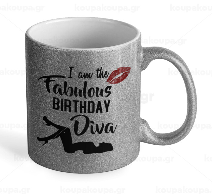 I am the fabulous Birthday Diva, Κούπα Ασημένια Glitter που γυαλίζει, κεραμική, 330ml