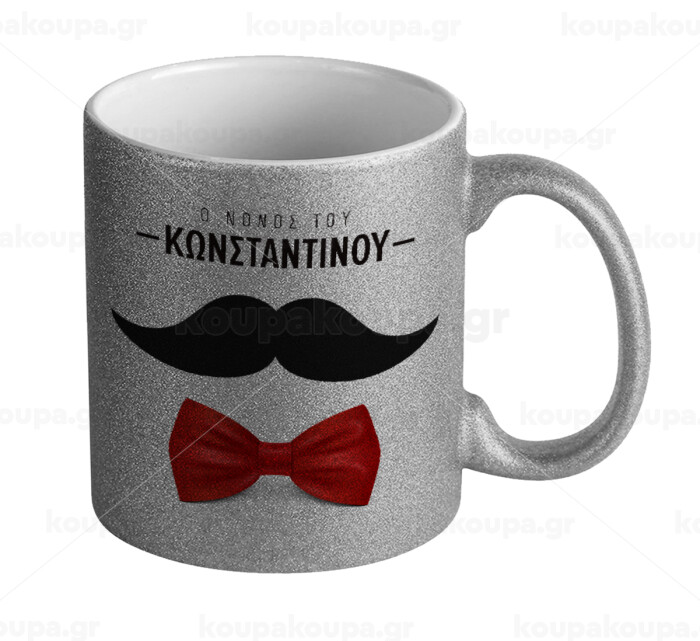 Ο νονός μου, μουστάκι με παπιγιόν, Κούπα Ασημένια Glitter που γυαλίζει, κεραμική, 330ml