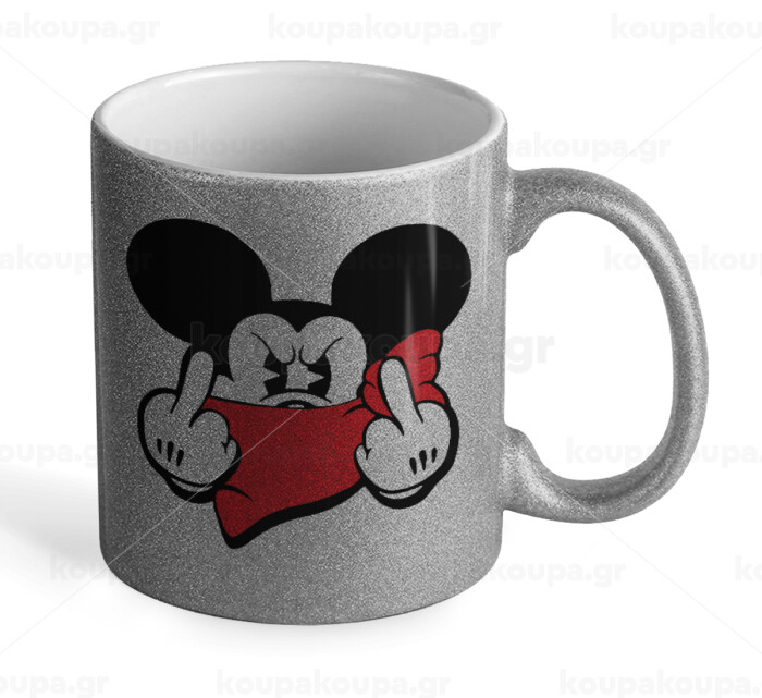 Mickey fuck off, Κούπα Ασημένια Glitter που γυαλίζει, κεραμική, 330ml