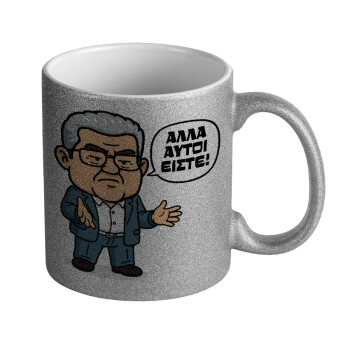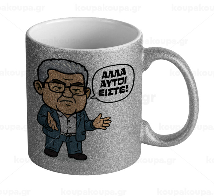 Κουτσούμπας, "Αλλά αυτοί είστε!", Κούπα Ασημένια Glitter που γυαλίζει, κεραμική, 330ml