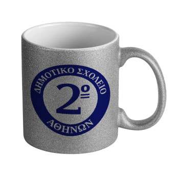 Έμβλημα Σχολικό μπλε, Κούπα Ασημένια Glitter που γυαλίζει, κεραμική, 330ml