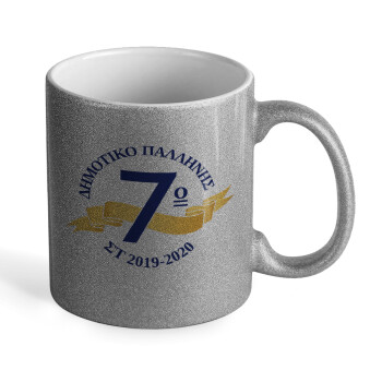 Σχολική μπλε με κορδέλα, Κούπα Ασημένια Glitter που γυαλίζει, κεραμική, 330ml
