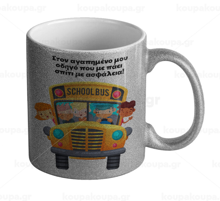 Στον αγαπημένο μου οδηγό που με πάει σπίτι με ασφάλεια!, Κούπα Ασημένια Glitter που γυαλίζει, κεραμική, 330ml