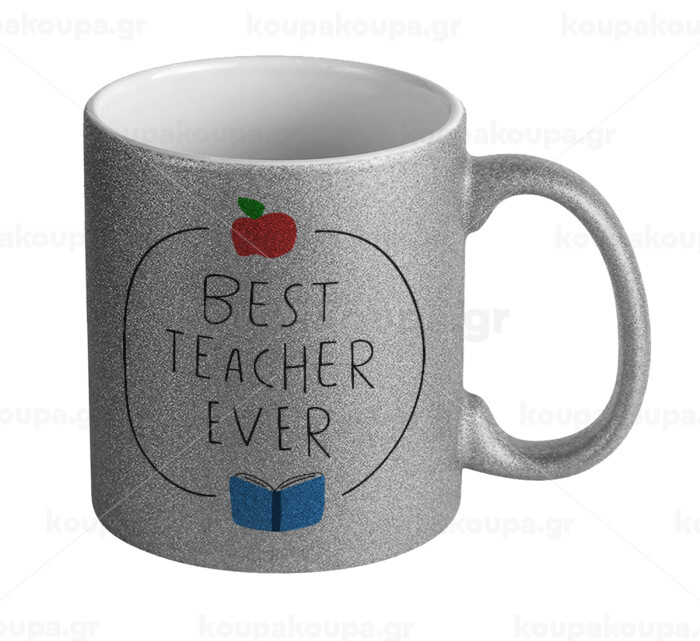 Best teacher ever, Κούπα Ασημένια Glitter που γυαλίζει, κεραμική, 330ml