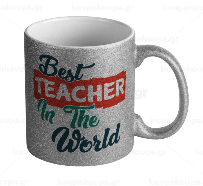 Best teacher in the World!, Κούπα Ασημένια Glitter που γυαλίζει, κεραμική, 330ml